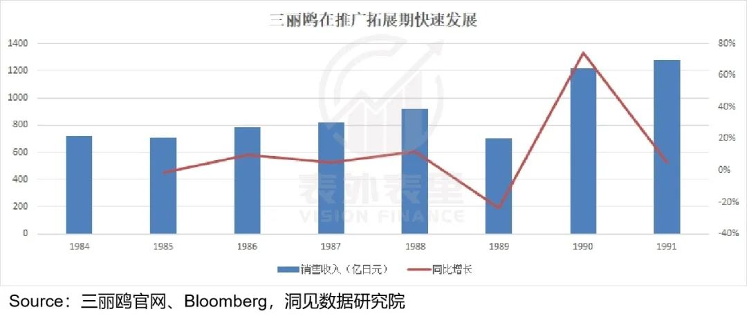 消费者认知建立,大力追捧下,1984-1990年,三丽鸥的收入持续上升。