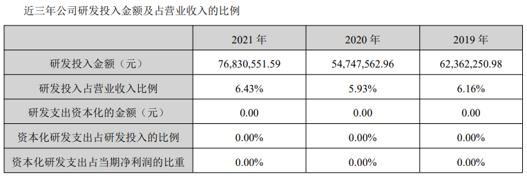 近两年,蓝晓科技的研发投入合计占总营收比例一直维持在6%左右。截至2021年年底,公司的存货余额则同比增长29.81%至4.73亿元。