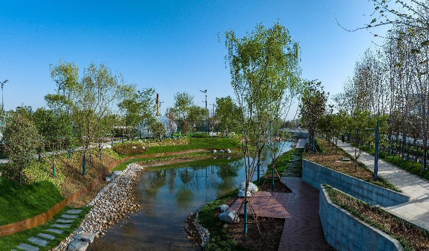 此外,位于丝路科学城中央创新区的永安渠海绵城市生态公园也将正式开放,公园里碧绿流水潺潺,绿植相映成趣,碎石堤岸、木质平台错落有致,用亲水慢道铺就了人们的慢生活。