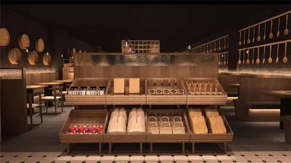 以北京悠唐餐厅为例,一改以往橙色活泼视觉,大量运用更具质感的木质元素,将时下流行的文创风和时尚元素结合。