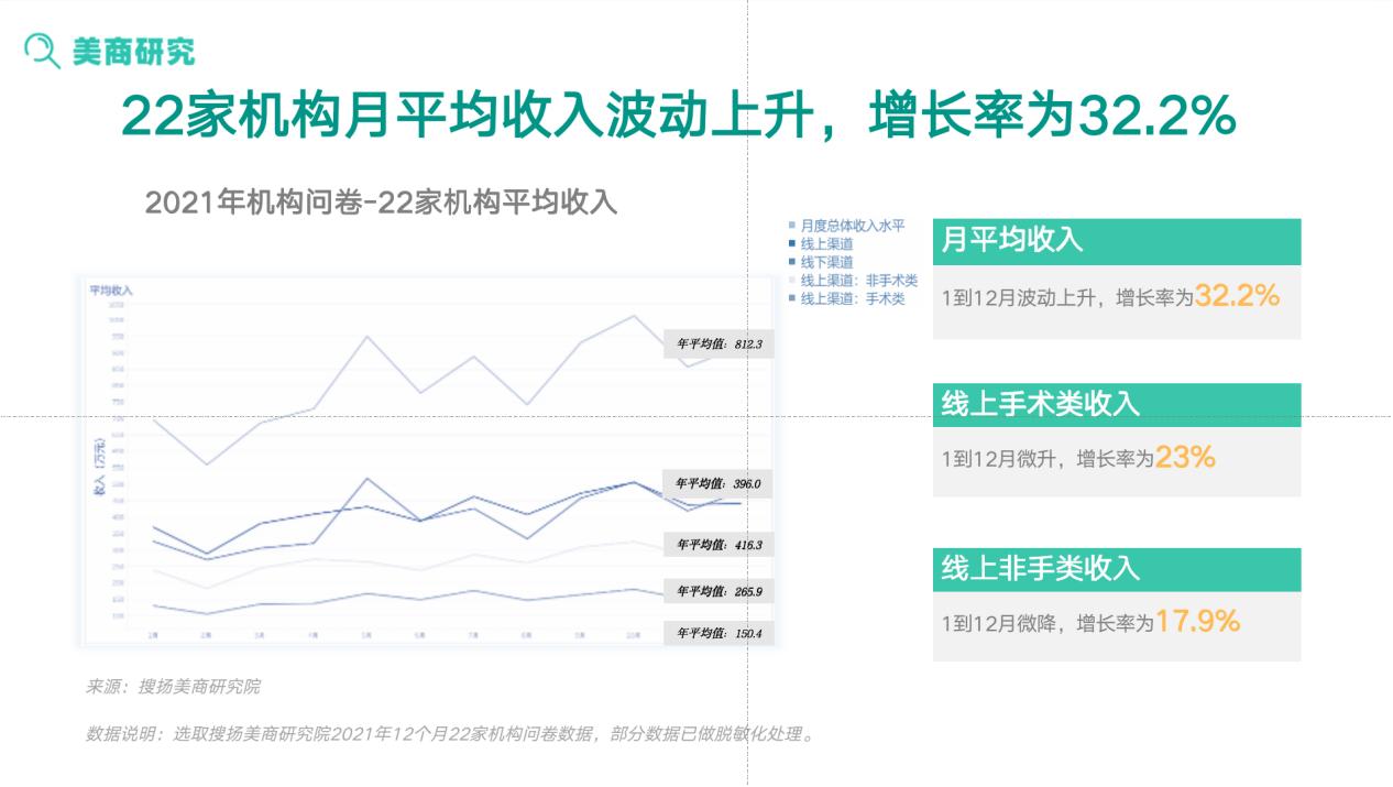 从调研数据来看,2021全年医美机构月平均收入波动上升,增长率为32.2%。