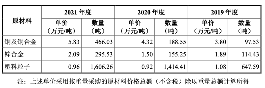 2021年毛利率明显下滑最重要的原因在于原材料价格大幅上涨。美科科技采购的主要原材料为铜及铜合金、锌合金、塑料粒子等,报告期内直接材料占公司主营业务成本的比重分别为65.02%、65.51%及66.71%。