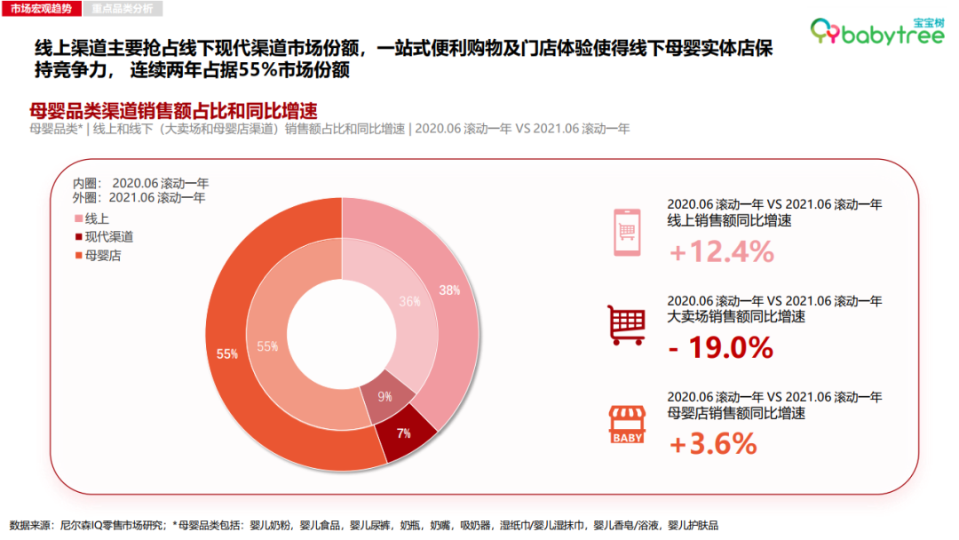 尼尔森IQ零售研究数据显示,2019年-2021年,中国母婴产品线下渠道始终保持80%左右的市场份额,“线下市场一直都是母婴品类的销售主要阵地。”