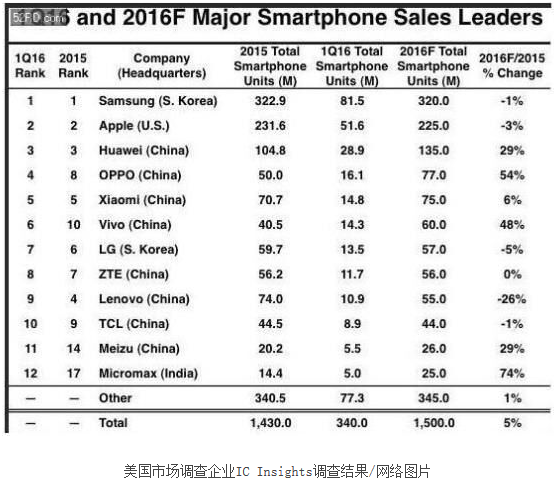 最惨的莫过于联想,在2014年凭借收购摩托罗拉,合并出货量达近9 200万台的佳绩,联想借此成为全球第三大智能手机厂商。岂料后来相继推出Moto X系列新机和联想VIBE手机发展皆不如人意,再加上三星、苹果等强敌的围剿,2015年联想出货量不升反降至7 000万台,衰退近24%,排名降至第四。据联想2015年财报显示,2015年联想手机在国内仅售出1000多万台,对比国内4.5亿台的手机出货量中显得如此微不足道。