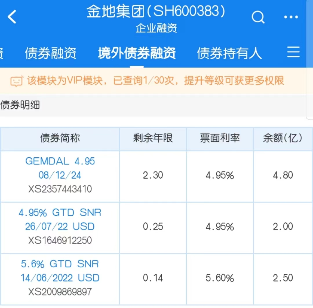 据统计,金地集团目前存续3只美元债券,存续规模9.3亿美元(约59.36亿元),其中2只一年内到期,分别为2022年6月14日和2022年7月26日到期,金额分别为2.5亿美元(约15.96亿元)和2亿美元(约12.77亿元)。