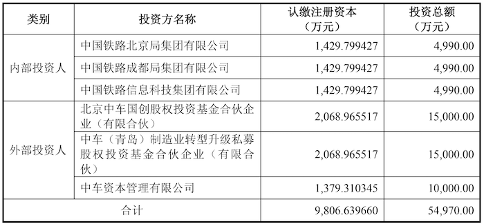 而中车国创、中车青岛和中车资本三家分别以1.50亿元、1.50亿元1.00亿元分别认缴注册资本2086.97万元、2086.97万元和1379.31万元,增资价格为7.25元/股。