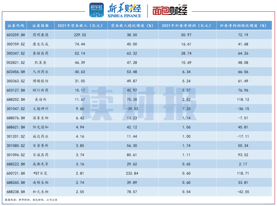 沪深两市大部分医疗研发外包企业的2021年年报或业绩快报已经披露完成。