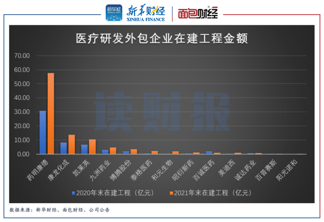 图2:2020年和2021年部分医疗研发外包企业在建工程规模