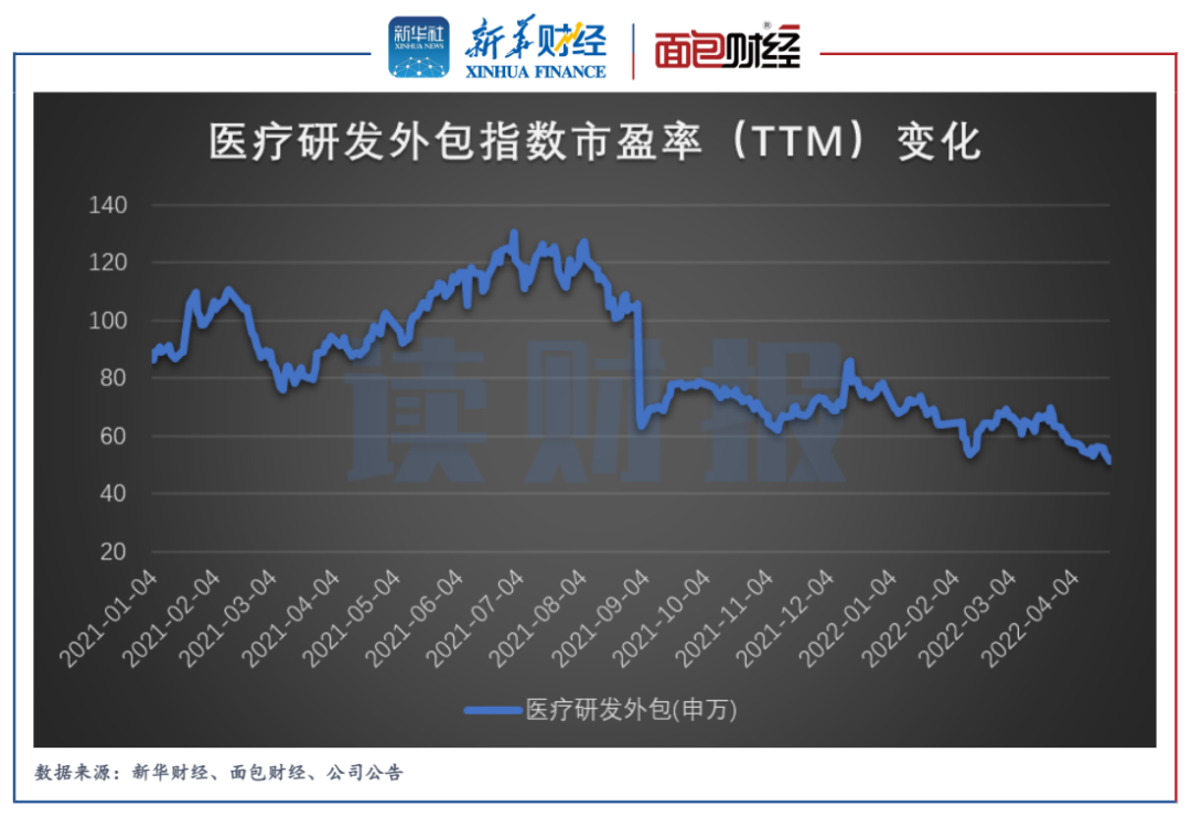 但另一方面,随着股价上涨估值抬升、对业绩持续性的担忧等因素影响,医疗研发外包行业2021年下半年以来持续面临估值下行压力。