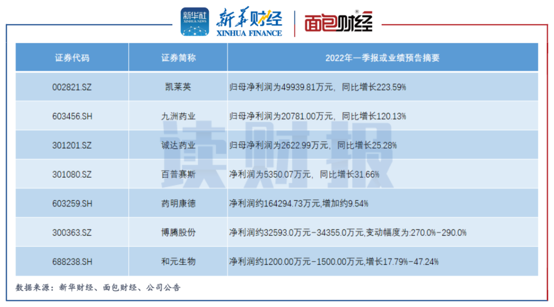 截至2022年4月24日,7家医疗研发外包企业已披露2022年一季报或业绩预告,其中3家利润翻倍以上增长。