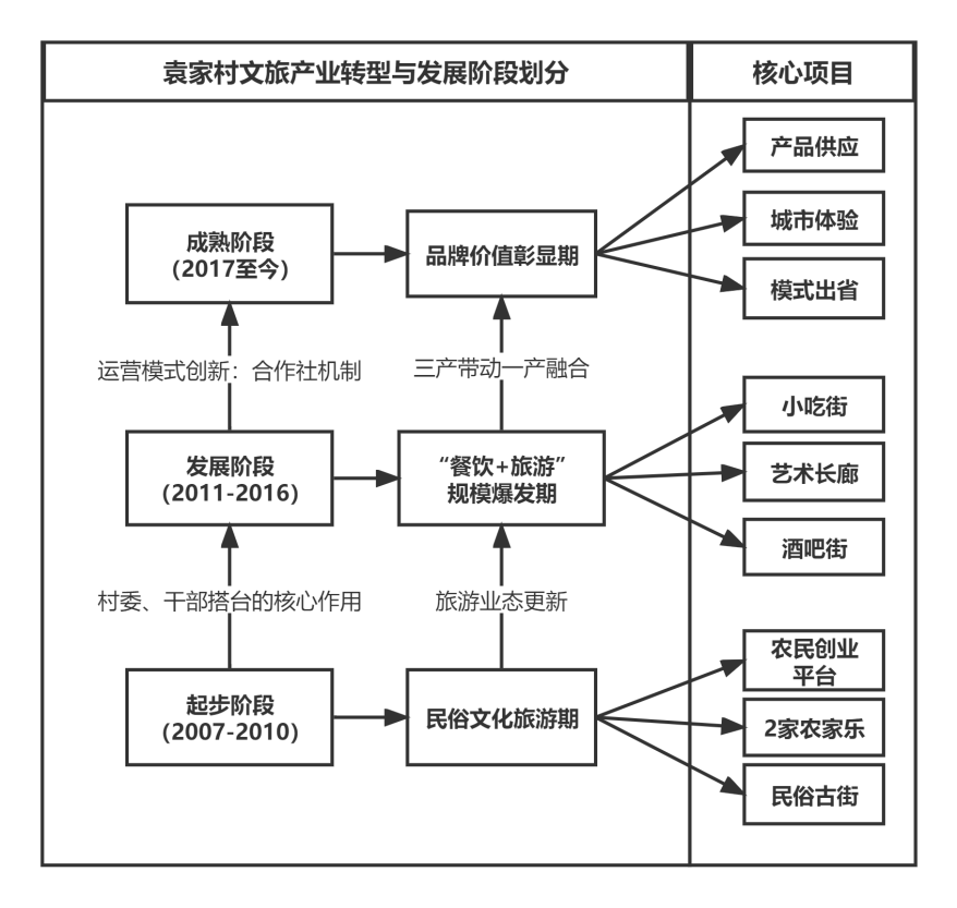 该阶段是袁家村实现文旅产业跨越式发展的“关键期”,主要创新点包括运营机制的创新和文旅业态的更新。