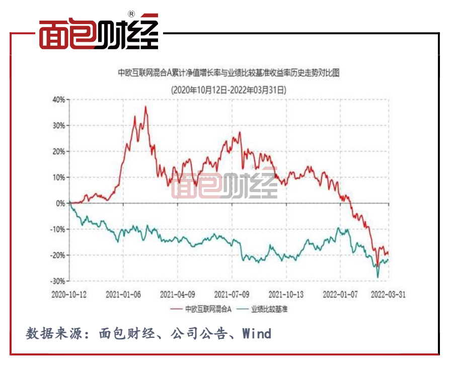 2022年一季度,中欧互联网先锋A的净值减少25.97%,跑输同期业绩比较基准14.07%。截至2022年4月22日,中欧互联网先锋A的单位净值已跌至0.7326元,今年以来的亏损率超过30%。