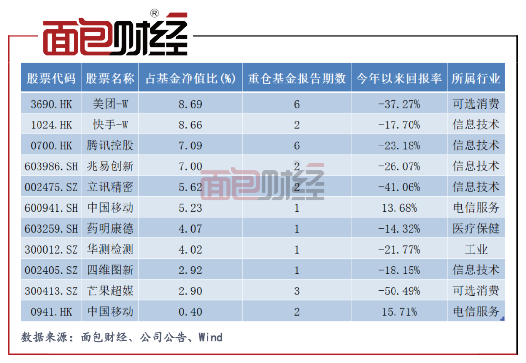前十大重仓股中,大部分股票在2022年以来出现股价下挫,其中第一大重仓股美团跌幅超过37%,立讯精密、芒果超美等股票年内亏损超40%,一季度首次进入重仓位的股票也多半出现股价下跌。
