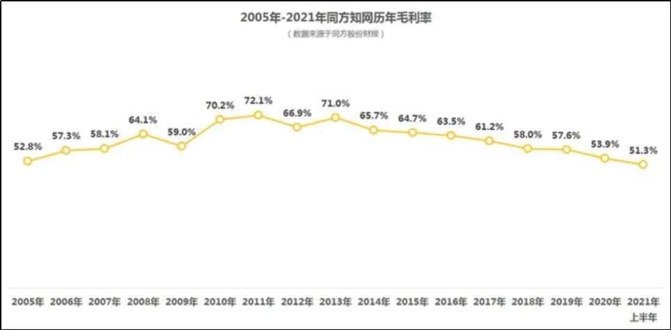 (2005年-2021年同方知网历年毛利率)