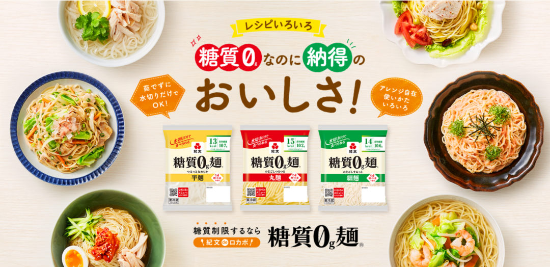 如日本纪文的「糖質0g麺」就是针对控制碳水摄入的饮食趋势推出的产品,提倡温和地控制日常碳水摄入,让人能长期、快乐地通过好吃的食物坚持控碳饮食,实现控制身材、改善皮肤及身体健康等目标。