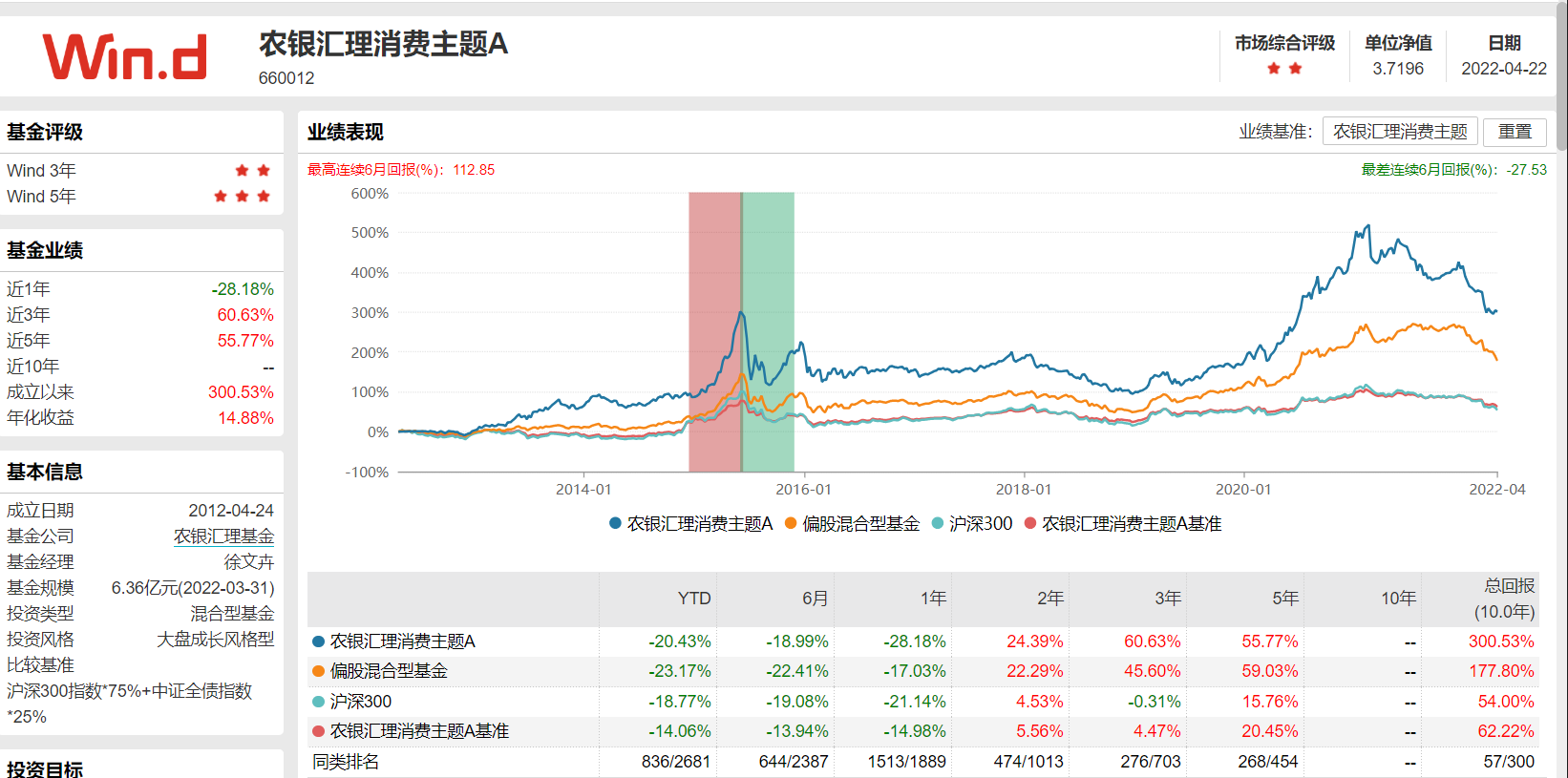 作为明星基金经理,付娟成名于2013—2015年期间,彼时,正是A股历史上少见的杠杆牛时期,在这波轰轰烈烈的行情中,她是业内最出色的成长股基金经理之一,业绩长期排名在行业前列,农银消费主题混合A成为她赖以成名的代表作。