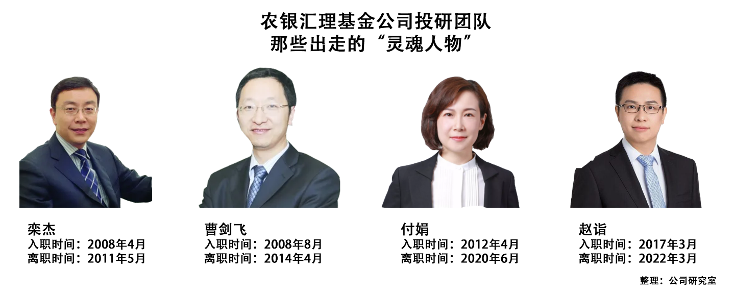 公司研究室注意到,自从2008年成立以来,农银汇理投研团队总共有4位大咖离职,他们分别是:栾杰、曹剑飞、付娟、赵诣。其中,前3位离职时都是公司投资总监;2022年3月离职的赵诣,也是公司投资部总经理,直接管理的4只基金规模超400亿,占比公司权益基金超50%。