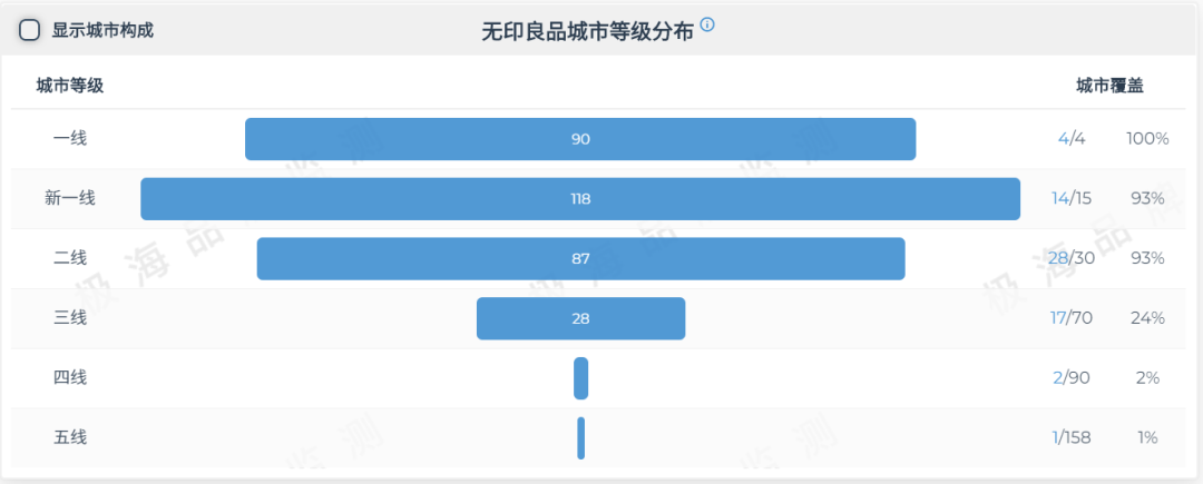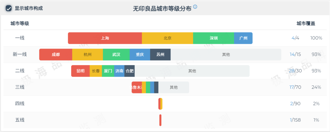 ▎无印良品城市等级分布(未包含台湾地区、香港)http://stores.geohey.com