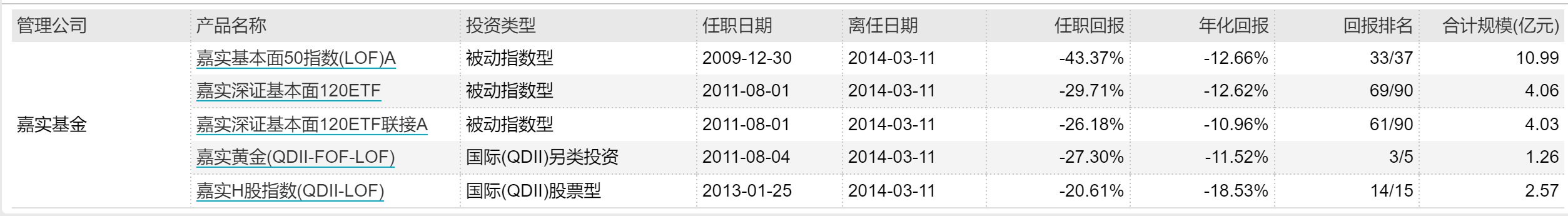 更早之前,2009年8月,杨阳入职嘉实基金,曾管理嘉实基本面50指数A(LOF)、嘉实深证基本面120ETF等5只基金,多为被动指数型和QDII基金。Wind数据显示,5只基金的任职回报均为负数,嘉实H股指数(QDII-LOF) 管理1年多,任职回报为-20.61%。