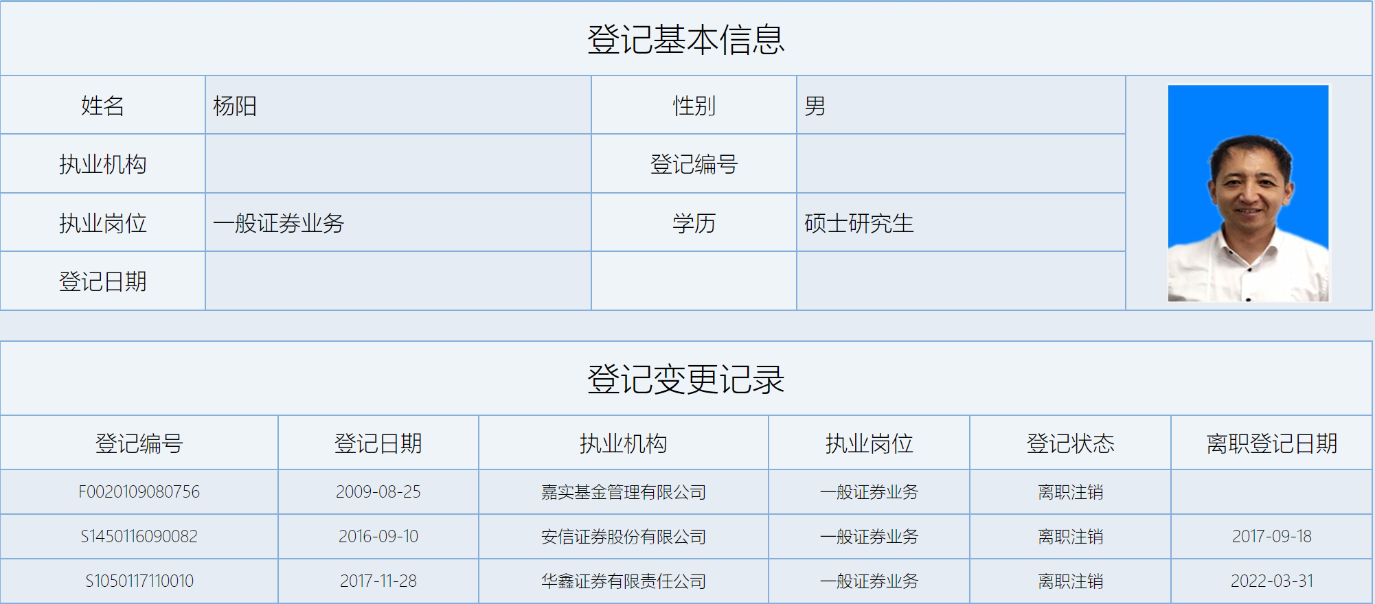 根据中国证券业协会披露的信息,杨阳从2016年9月加入安信证券,任职仅一年之后转战华鑫证券,在华鑫证券的任职已于今年3月31日登记注销。