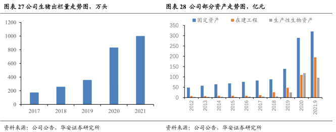 从2018年开始,公司开始进入大规模快速扩张周期。体现在报表上,就是在建工程和生产性生物资产(具有生产能力的,包括种公猪与种母猪,拥有禽类养殖业务的公司还会有种鸡与种鸭)的快速扩张。