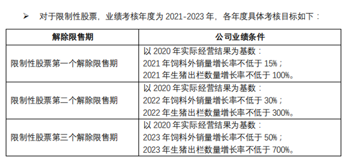 2021年新希望内部考核目标2500万头,并挑战3000万;2022年要确保出栏4000万头。 在去年1月初发布的股权激励计划中,则将产能“跨栏式增长”推向了高潮。