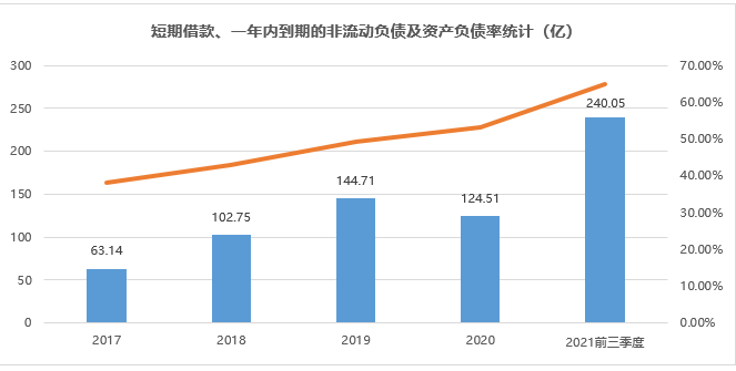 真正的压力在2022年。仅今年前三季度上述短期流动负债和一年内到期的非流动负债指标,就同比增长了92.8%到240.05亿。全年这一数据还会更高。