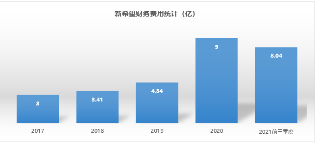 而2022年4月发行的175天8—15亿的超短融,利率区间5.5%—6.5%,利率提升了一倍,而且前者还是长周期条件下的低利率。 反观财报,新希望财务费用2020年大幅增加,9个亿相较2019年翻了一倍。而2021年前三季度财务费用8.04亿,并没有显著增加。