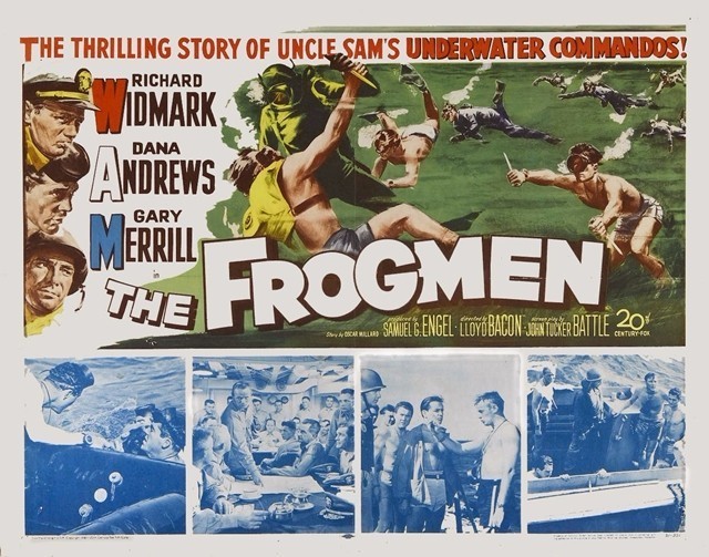 1951年美国电影《THE FROGMAN蛙人海底战》影片截图,片中人物佩戴HAMILTON蛙人军表。