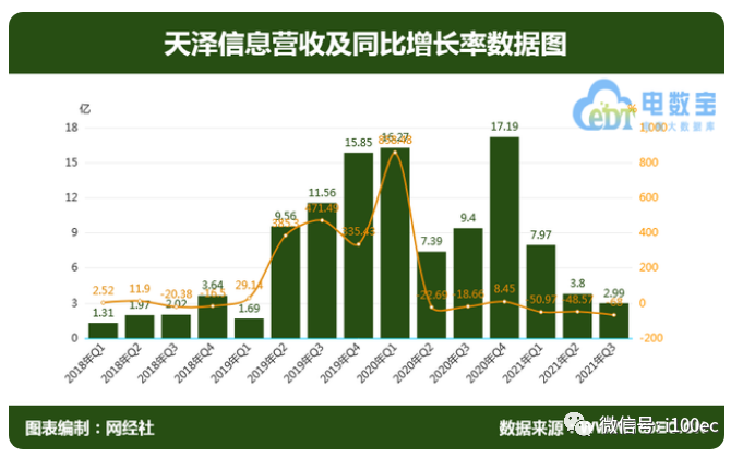 据悉,天泽信息成立于2000年,2011年4月登陆深交所创业板,其中有棵树跨境电商出口业务是公司主要收入和盈利来源。