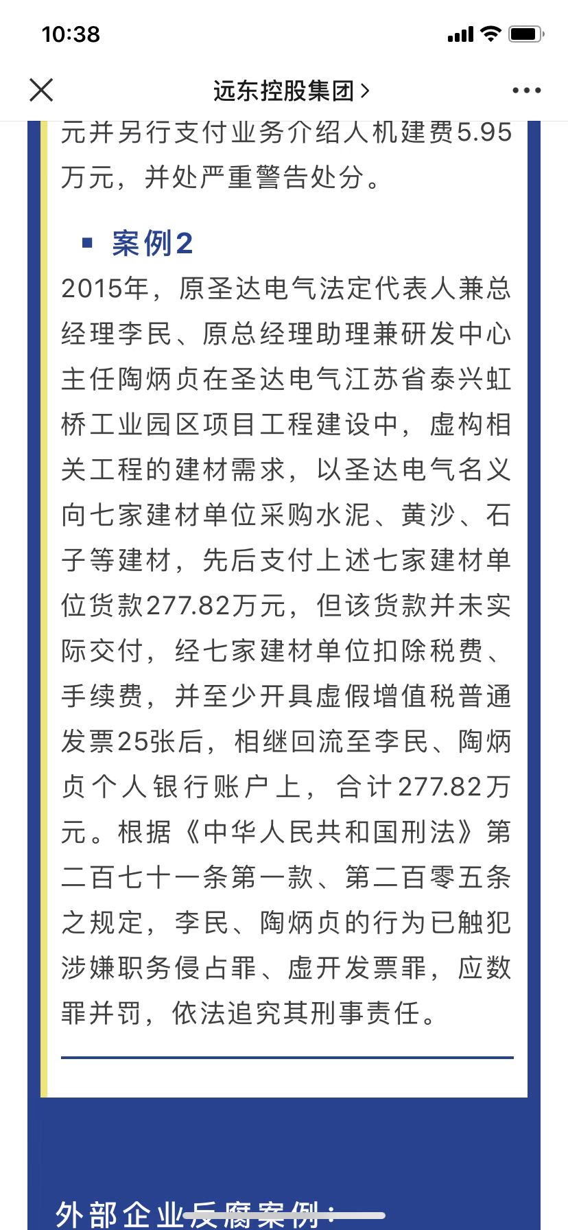 今年,远东控股集团有限公司官微公开表示,李民的行为已触犯涉嫌职务侵占罪、虚开发票罪等。