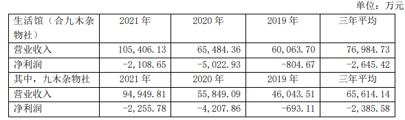 九木杂物社2021年实现营业收入9.5亿元,同比增长70%;净亏损2255.78万元,同比收窄46.39%。