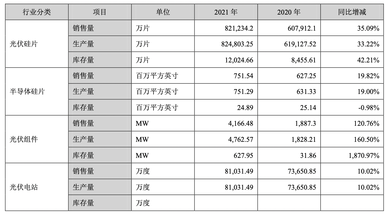 报告期内,中环股份光伏硅片销量为82.1万片,较上年增长35.09%;产量82.5万片,同比增长33.22%。