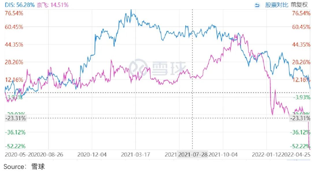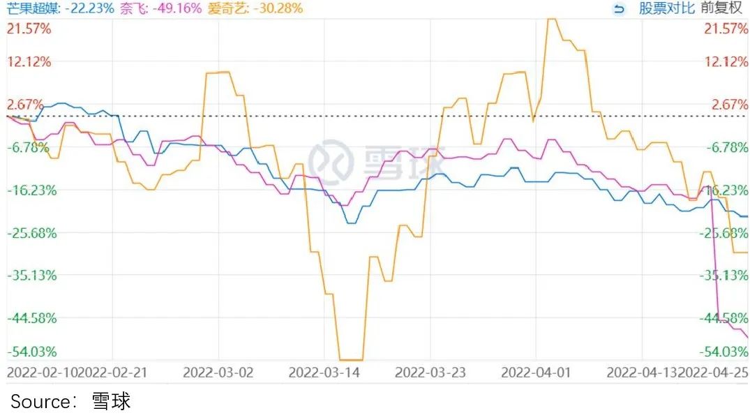 相比之下,同为差生的爱奇艺以及优等生奈飞,却是一路下跌,没有停止的迹象。