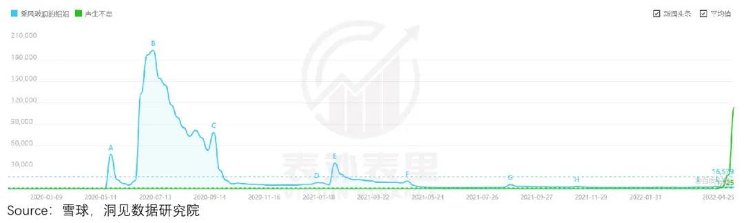 百度热度指数显示,《声生不息》开播当天就超过10万热度值,第二天接近12万,颇有当年《姐姐1》的风姿重现。