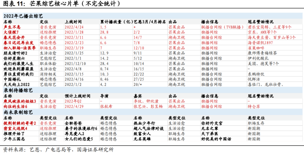 比如,芒果超媒自己就在电话会议中说道:公司今年对综艺很有信心,Q2和Q3都会比之前有更强的表现。