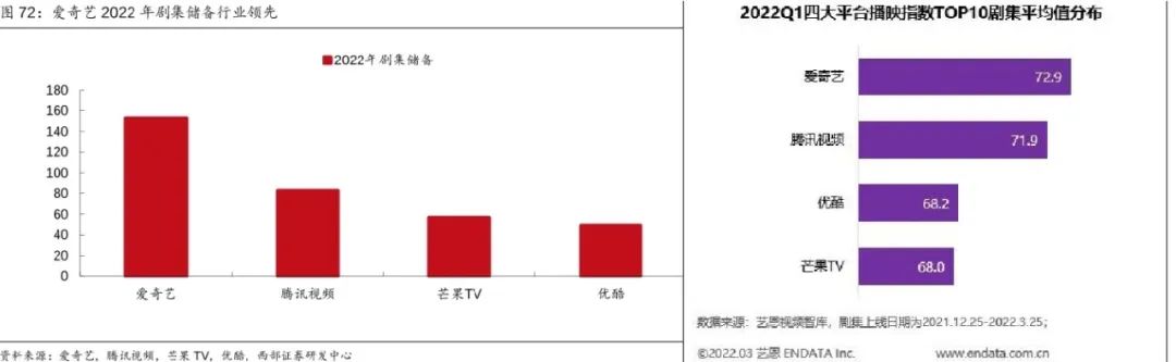 虽说上述分析显示,逆势反弹和管线充裕有很大相关性。然而就2022年的剧集储备来看,芒果TV并不占优。