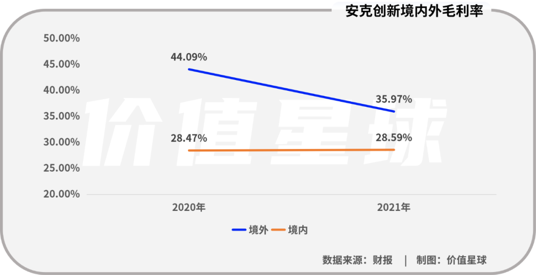 的确如此,从安克创新的财报来看,公司2021年国内收入增速达到193.96%,但是公司整体毛利率却从同期的43.85%下降到35.72%,下滑8个百分点。