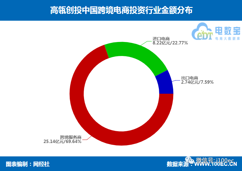 行业金额分布上,出口电商2.74亿元、进口电商8.22亿元、跨境服务商25.14亿元。