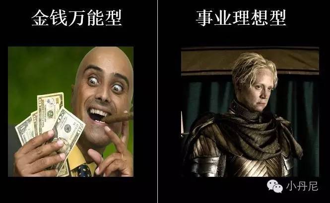 生活中存在矛盾的两类人:“金钱万能型”和“事业理想型”。