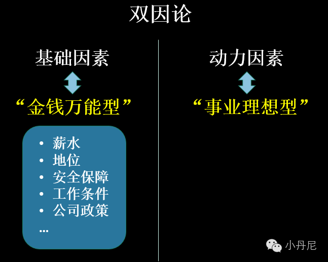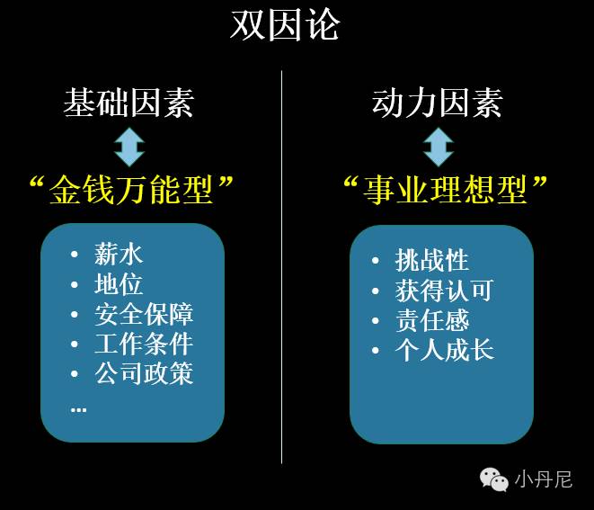 心理学家Frederick Herzberg提出的“双因论”,认为引起人们工作动机的因素主要有两个:“基础因素 ”和“动力因素”。