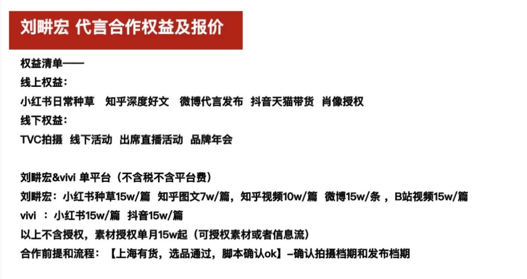 而上周《最话》获取的一份小红书、b站、知乎等平台的合作报价,一篇短视频内容7-15万不等。