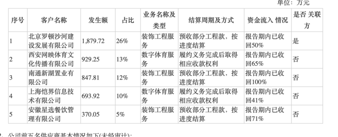 2021年度,公司前五大客户依然有三位来自传统业务装饰工程服务,电竞业务全面转型尚未完成。