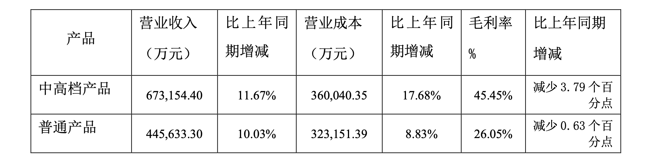 2021年,燕京啤酒主要销售产品以中高档为主。根据业绩报告显示,燕京啤酒中高档产品、普通产品分别实现营业收入67.32亿元、44.56亿元,分别占总营收的60.17%、39.83%。