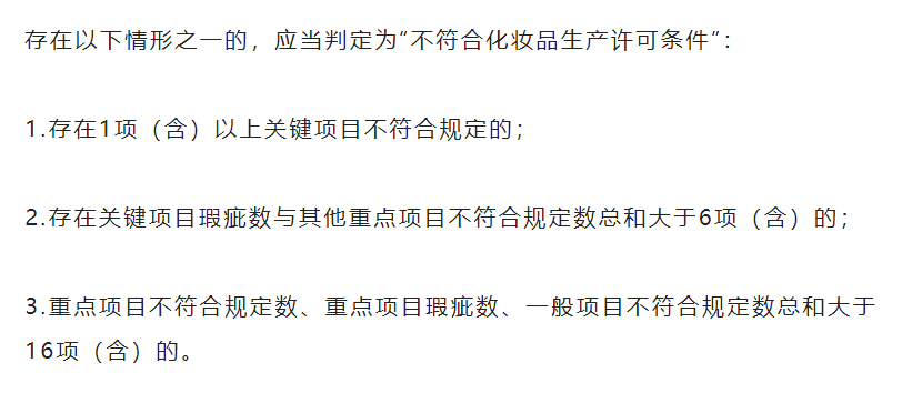 并规定核查结果为上述“不符合化妆品生产许可条件”三种情形之一的,应当依法撤销其化妆品生产许可。