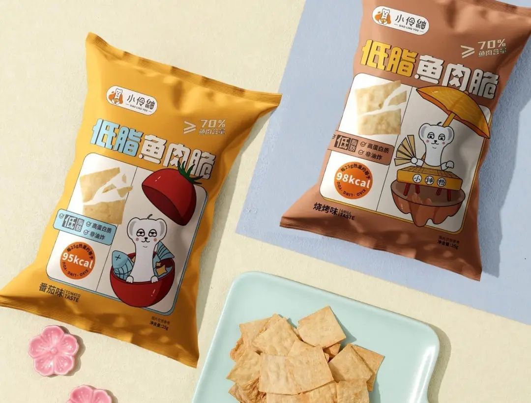 除了预制菜,因为鱼虾肉质的可塑性,它们也被广泛用于零食中。小伶鼬低脂鱼肉脆以深海带鱼为原材料,含有70%鱼肉含量,不油炸的情况下让鱼肉也能脆着吃。鳕鱼因为高蛋白、低脂肪,含有的EPA、DHA比例适合婴幼儿,在婴幼儿零食中频繁出现,比如简单易做的鹿优鲜鳕鱼块和开袋即食的力诚宝宝鳕鱼肠。