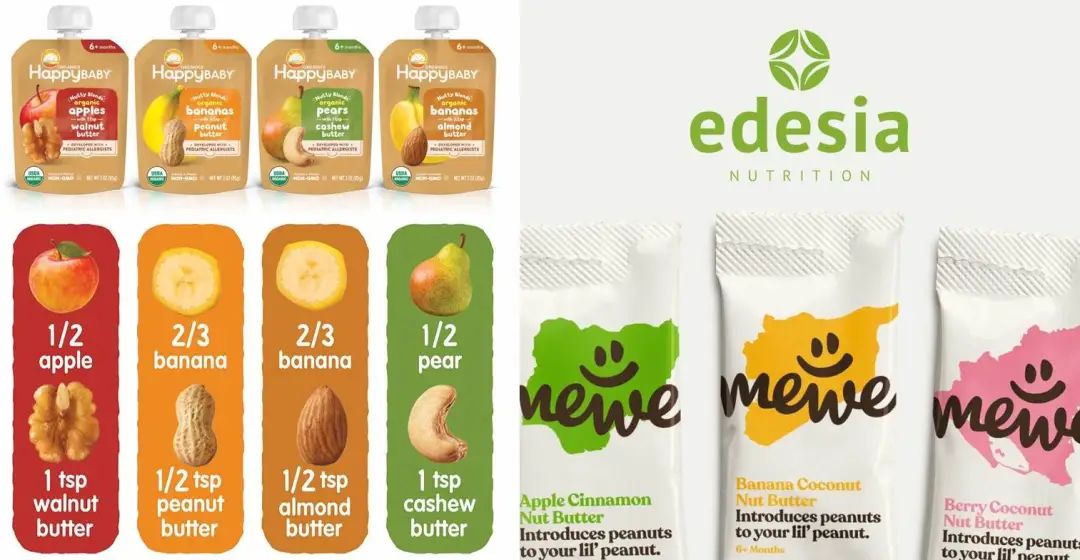 众所周知,婴幼儿和儿童是食物过敏的高发群体。与以往远离过敏原的解决思路不同,近年来营养学界越发趋向于将解决办法“前移”到婴儿阶段。与国内相比,海外上市的婴幼儿食品中,添加过敏原食物的比例逐年提高。比如美国婴儿食品品牌happy Family,MeWe等就在产品中添加花生、腰果等坚果成分,帮助宝宝提早适应过敏食物,减少后期过敏症状的发生率。