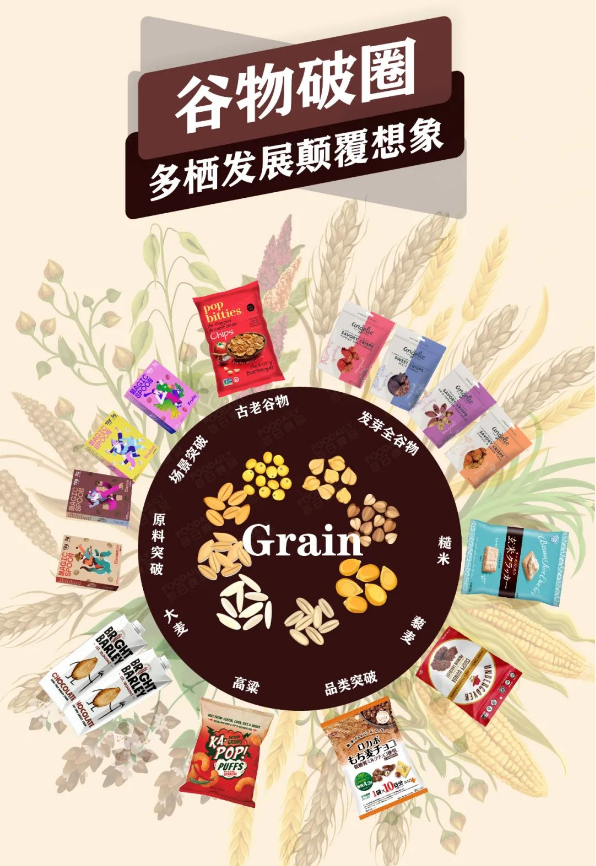 除了全谷物整体,它所含有的谷物胚芽、谷物麸皮、谷物纤维、谷物蛋白都逐渐成为食品企业的重点关注成分。秋田满满和芽芽乐分别推出的有机胚芽米就以保留更多营养的胚芽米为主要卖点,根据婴幼儿消化功能特性对胚芽米进行柔性切削等预处理,不仅让宝宝适应咀嚼,更利于提升宝宝肠胃消化力,提高钙铁吸收。由于全谷物本身的营养、健康和可持续性价值,它正在破圈到饮料、乳品、零食等品类,抢占更多品类和场景机会。