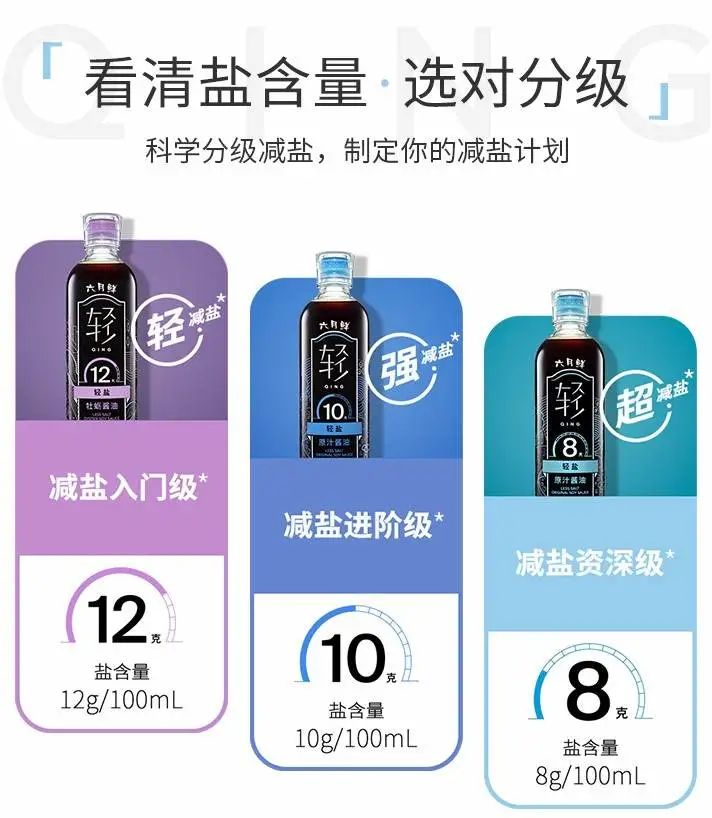 从营养学角度看,食盐中的钠才是引发高血压的罪魁祸首,降低钠盐摄入量,是全民减盐的关键。食品企业从风味搭配、替换盐的来源、氯化钠分子的改造等不同途径来实施减盐,比如调味品牌明日味白利用复合的九种菌菇香味提香,降低钠含量20%;無他嘉选推出的喜马拉雅岩盐复合调味料采用喜马拉雅山区的粉盐,钠度低于普通食盐;欣和六月鲜轻盐酱油通过专利减盐技术,去除多余钠离子,减盐不减风味,除此之外,还分梯度地设计了4款不同盐分含量的轻盐酱油,帮助消费者科学逐步减盐。