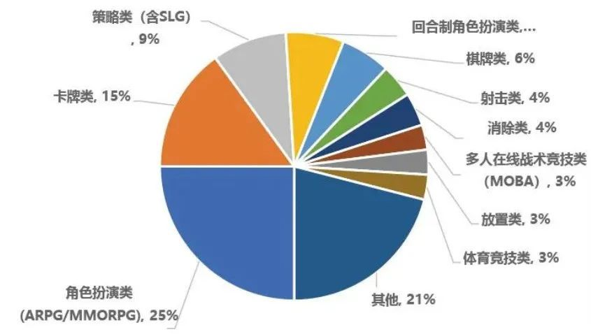 从伽马数据发布的《2021年中国游戏产业报告》来看,MMORPG虽然卷,但也是最赚钱的品类。2021年中国收入排名前100的移动游戏中,角色扮演类占比高达25%,同比上涨5.52个百分点。